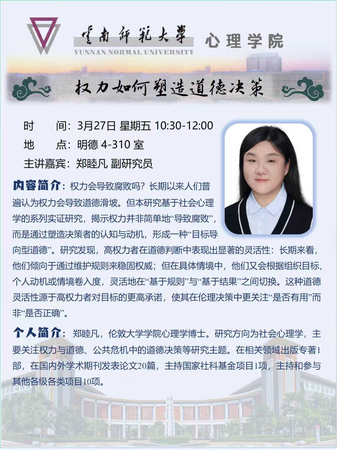 学术讲座|郑睦凡:权力如何塑造道德决策
